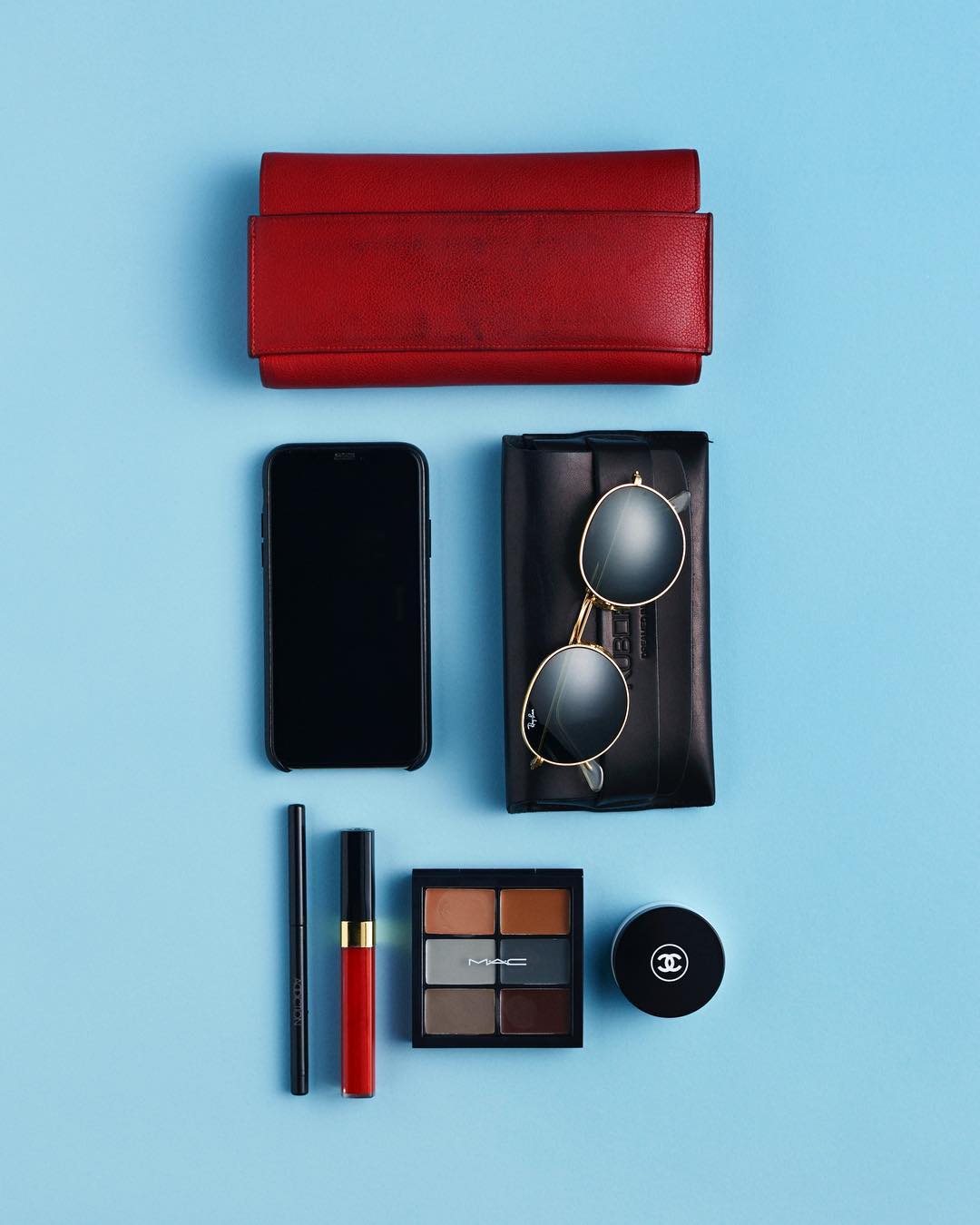 メイクアップアイテムも、荷物をコンパクトに厳選するテクニックに脱帽。たと えばELINデザイナーの榎本美穂さんは、M・A・Cのプロ アイ パレット ザ デイムをバームに重ねてリップカラーとしても活用していたり、随所にアイディアが 光ります。気になる他のアイテムの詳細はぜひ本誌をご覧ください。