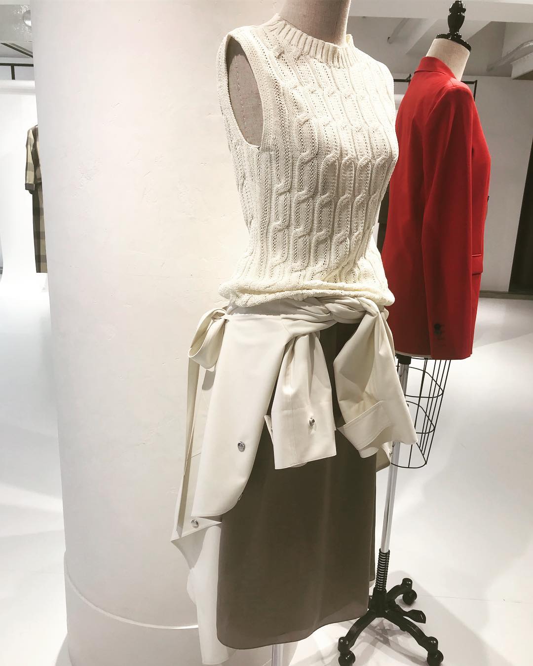 9枚目 プレスの高橋さん曰く、NYのコレクションでは、とにかく「腰巻き」推しだったとか。こんなふうにスカートにコートを巻いたり、ワンピースにシャツを巻いたり。日本にも「腰巻き」ブーム、くるかもですね✨