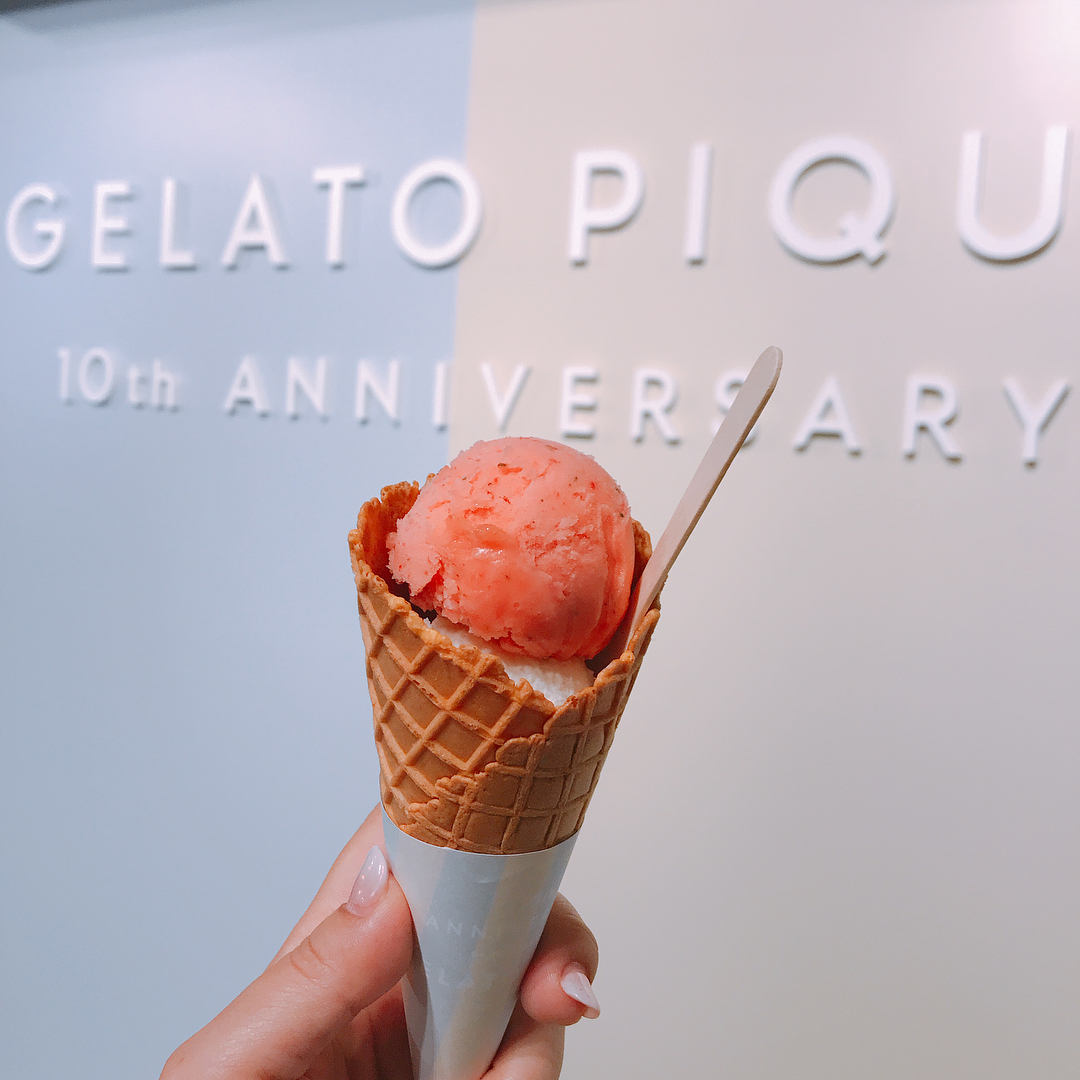 GWがいよいよスタートしましたね。東京は今日もいいお天気! ジェラート日和です💖 この写真のイチゴジェラートは展示会でごちそうになったもの。