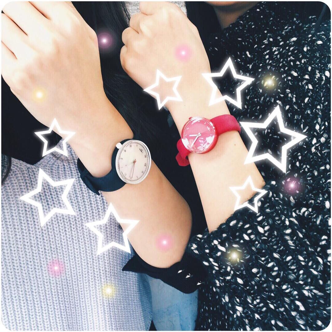 モデルプレス編集部2人でお邪魔してきたんですが、一つは普段使いにもぴったりな【ブラック×オーロラ】✨オーロラの文字盤に一目惚れしてしまいました😍もう一つは【ピンク×ピンク】でファッションのアクセントにぴったりな色に(*^^*)