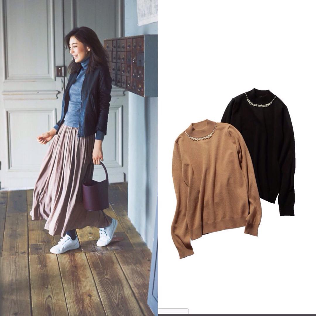 みなさまのご応募、お待ちしております!☺️! #fashion #present #knit #skirt #ビジューニット #プリーツスカート #秋も洗える服が頼りになります