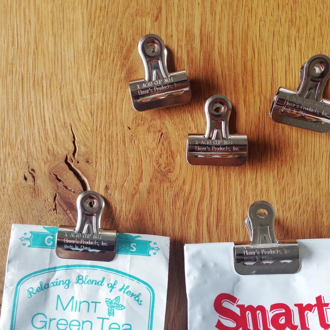 例えばこのブルドッグクリップ。お茶の袋、留めまくってます。すげーかわいいです。