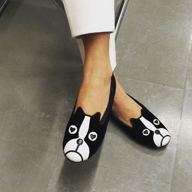 今日のスタジオにはワンコがいます🐶👀‼️ スタイリスト佐藤佳菜子さん@kanakosato1019の愛用、マーク バイ マーク ジェイコブスのフラットシューズ。