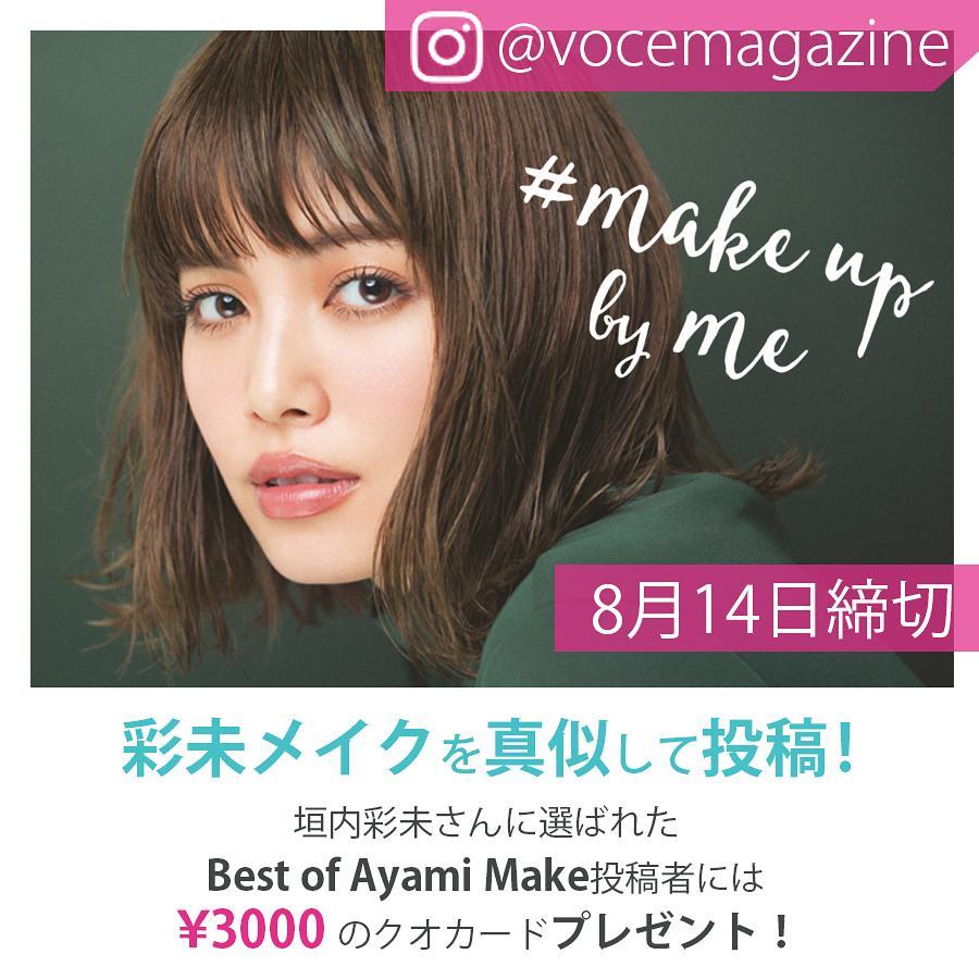 VOCE9月号から垣内彩未さんのセルフメイク連載がスタート! VOCEで彩未さんが見せてくれたセルフメイクを真似して投稿するインスタキャンペーンを実施します。素敵な写真にハッシュタグをつけてインスタグラムにポストしてね。キャンペーンに参加した方の中から、彩未さん自身が選んだBest of Ayami Makeを決定! 選ばれた方には、¥3000_ のクオカードをプレゼント♪ みなさまの参加をお待ちしております。