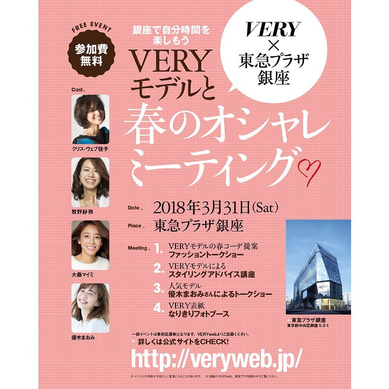 #東急プラザ銀座 #銀座で自分時間 #クリスウェブ佳子 #牧野紗弥 #大桑マイミ #優木まおみ #雑誌VERY #VERYweb