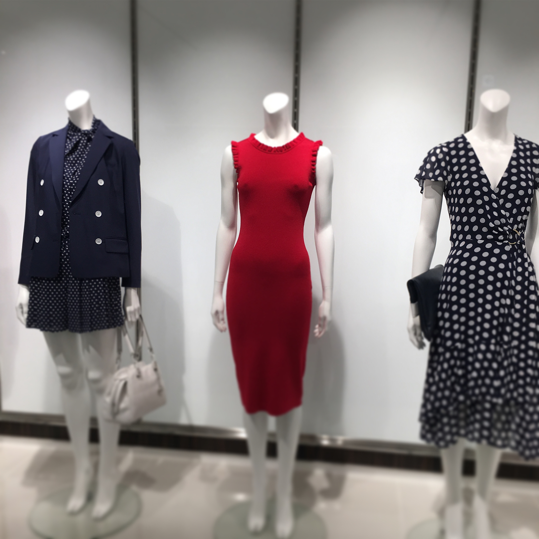 『マイケル マイケル・コース』の展示会にて。パッと目をひく赤いワンピースと、春話題の柄=水玉柄のウェア。ちなみに、ジャケットを羽織ったボディは、実はインがセットアップなんです。柔らかな素材×キリッと見えるジャケットのコンビもオススメの合わせ方。キリッと、と書きましたが、春は柔らかな雰囲気でこなすジャケットスタイルにも注目を。キリッとでもカチッとでもない、いい表現を探さないとなぁと思っています^ ^/副編Y