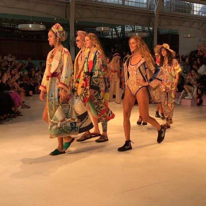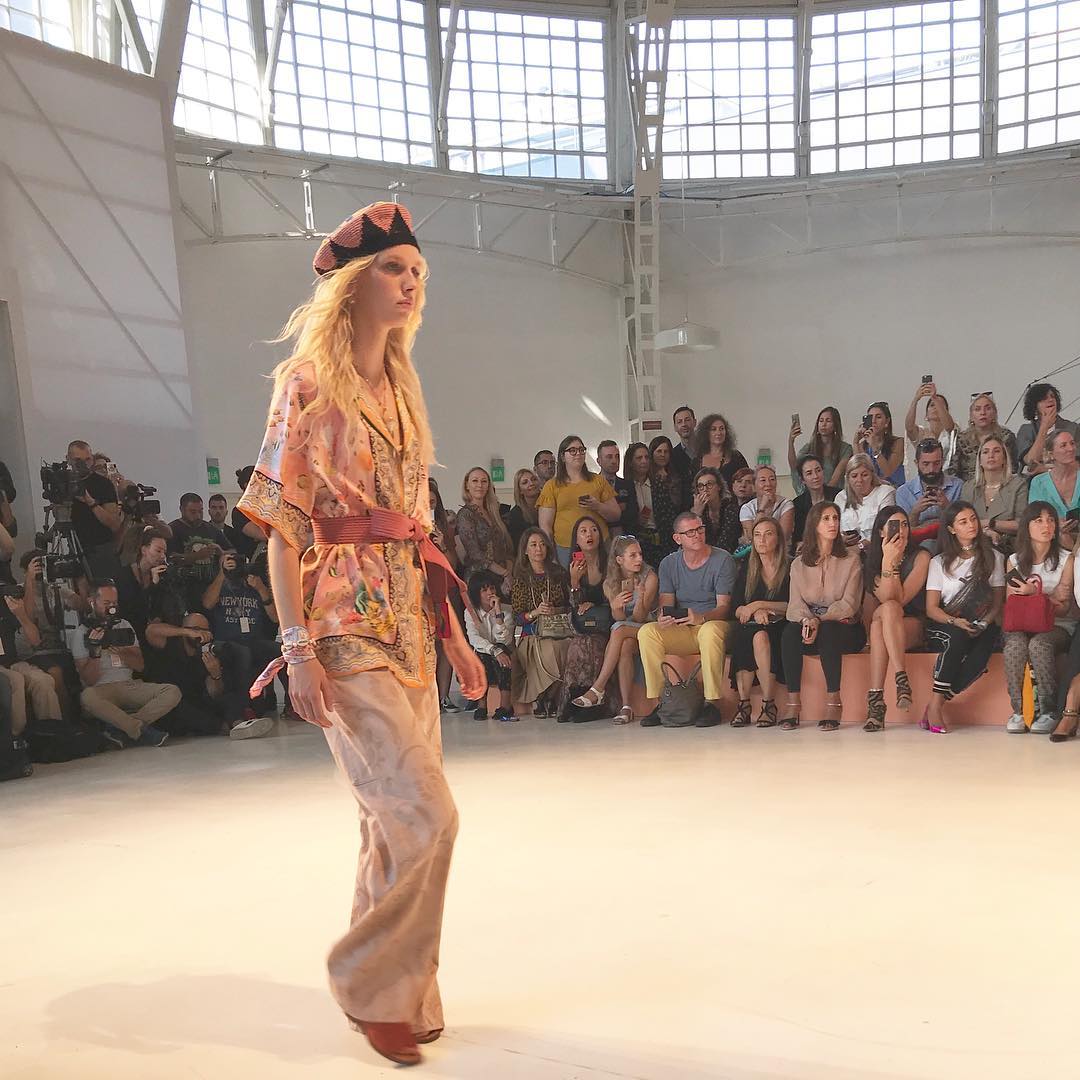 つば広のブリムハットにはワイヤーが。ターバンはパイル地とコンバインされ、シャワー後のヘアキャップのようにくるくるっと巻ける仕立て。ちょっと気が利いてるヘッドアクセサリーはリアルに欲しいアイテムです。(編集N) #etro #エトロ #surfgirl #apresurf #2019ss #MFW