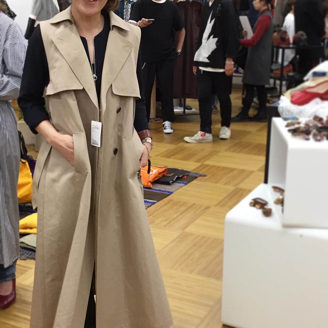 トレンチコートのディテールを持ったロングジレのような、このスラリきれいなアイテムは『シップス ブルーストア』のもの。プレスの成瀬さんが展示会で着こなしている様子がおしゃれで、撮らせてもらっちゃいました😊さっと羽織るだけで絵になる一枚。いてもの着こなしに変化をつけたいときにオススメです。お値段は税抜き¥16600だそう^ – ^/副編Y