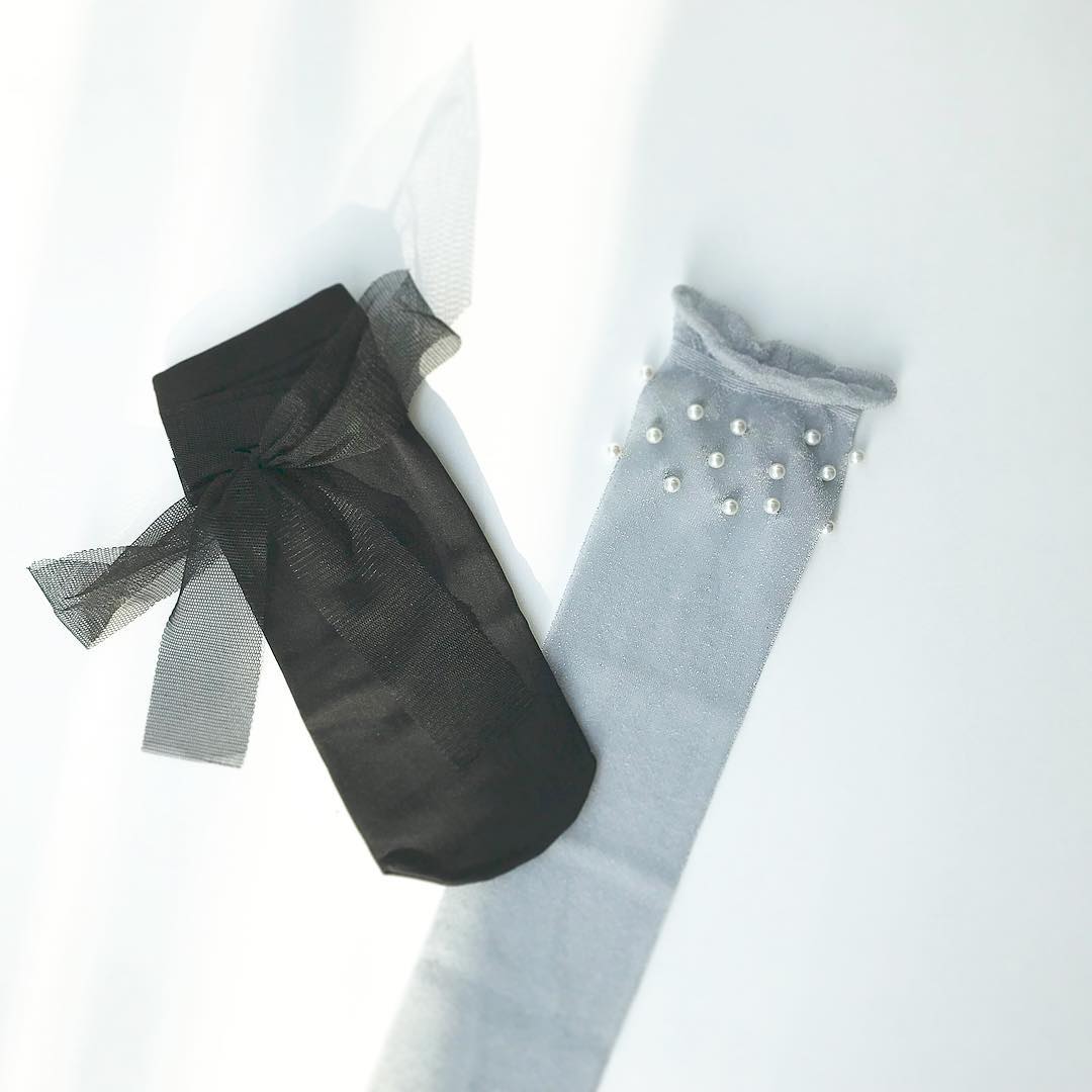 #socks #pearl #lame #bow #カルツェドニア