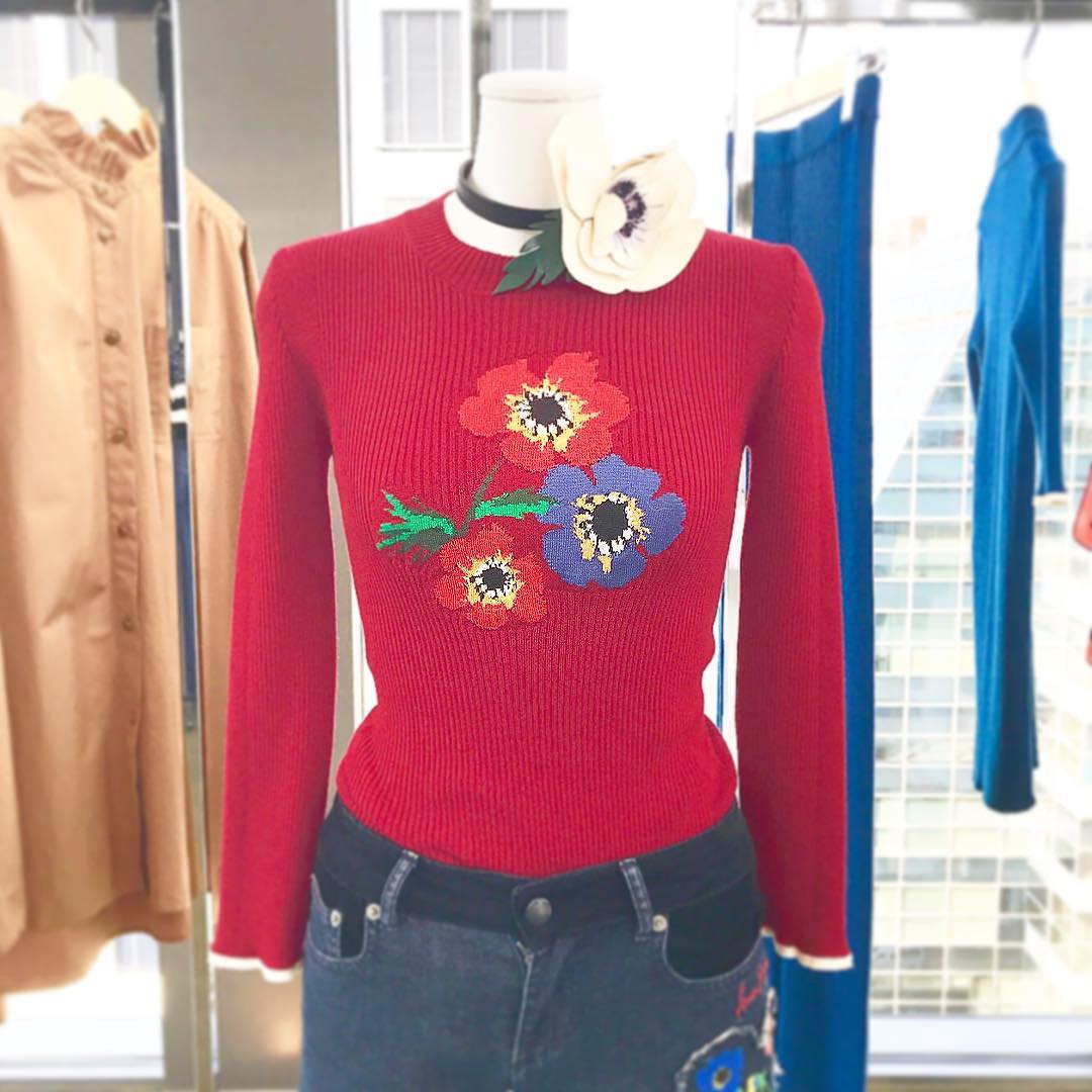 70’sなムードの #アネモネ のニットは、SONIA RYKIEL。デニムとの相性も抜群です。(編集N)#SPUR #fashion #mode #follow #spurfebruaryissue #mode #magazine #soniarykiel #ソニアリキエル #spurflower #knit #ニット #赤 #red #レッド#flower #花