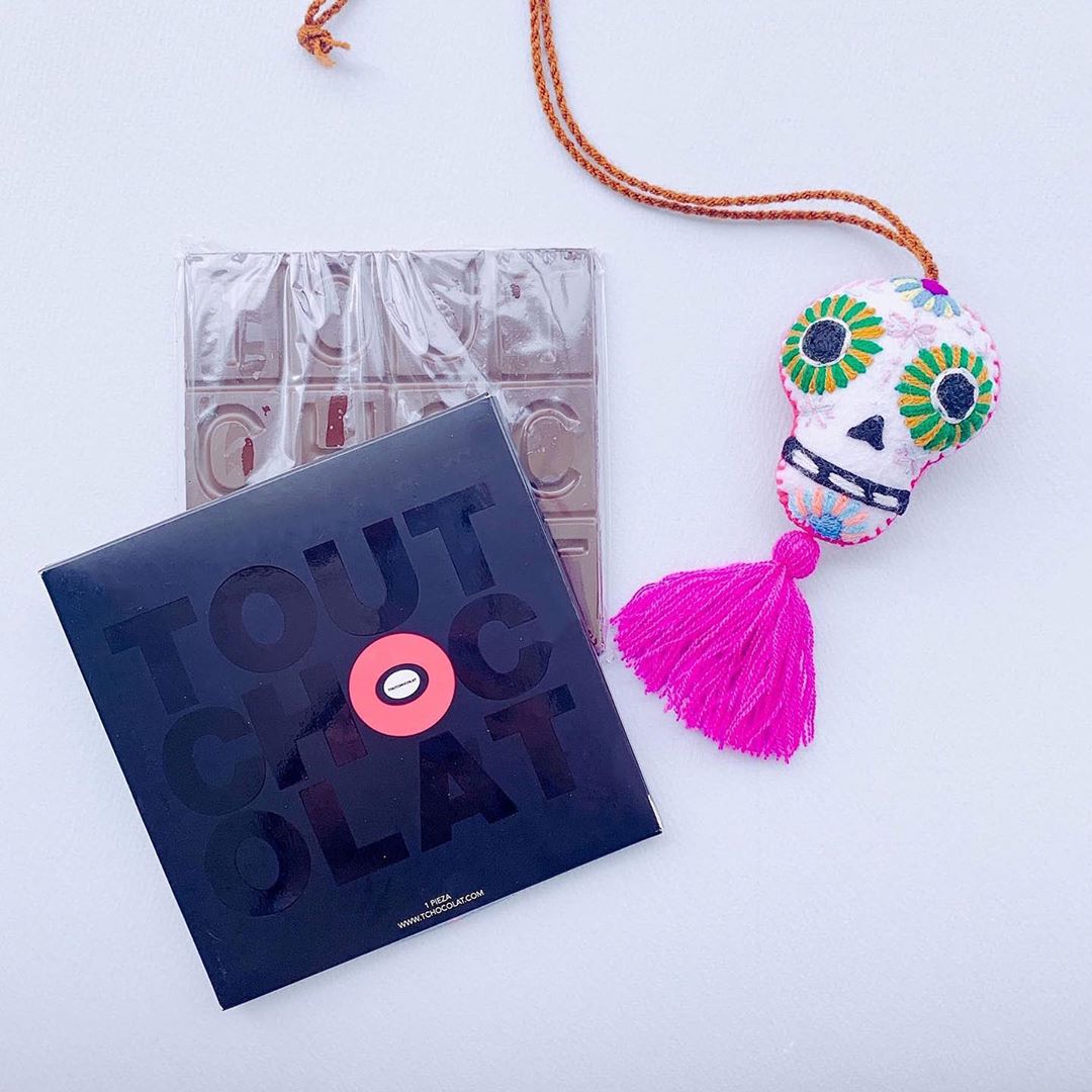 山崎まどかさんから、メキシコ土産を頂きました💕シティに3店舗を構えるTOUT CHOCOLATのタブレットと、カラフルなカラベラです! チョコレートはカカオ66%の程よくビターな味わい。愛嬌たっぷりのスカルを眺めながら頬張れば、遠い異国への憧憬がより強くなりました。(編集U)