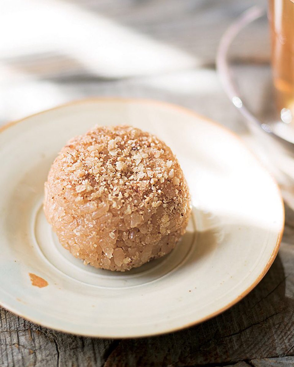 3️⃣くるみ、白ごま、塩小さじ2分の1を合わせてすり鉢ですり、おむすびの表面にまぶす。