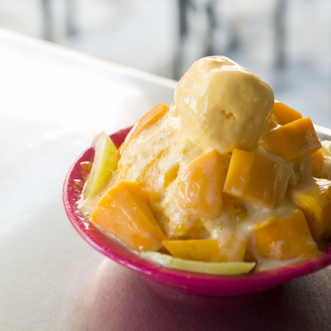 【台南】マンゴーかき氷といえば「有間冰舖(ヨウジェンビンプー)」。凍らせた天然マンゴーの果汁をふわふわに削いだ雪花冰を使用。カットしただけのマンゴーも文句なしのおいしさです。⠀