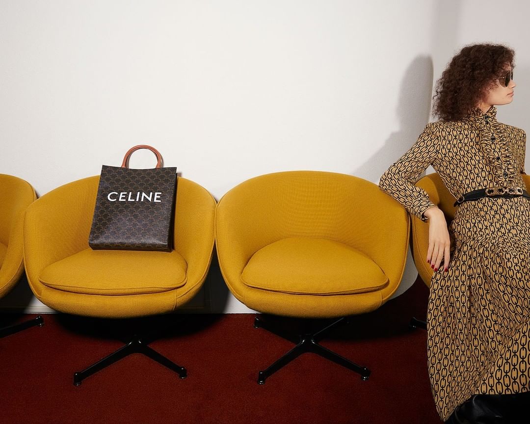 アーカイブを再解釈したセリーヌの新作は、70年代のトラベルバッグに使用されていたコーティングキャンバス素材。あえて影が出るようにプリントされたトリオンフ柄がヴィンテージ風の趣。⠀