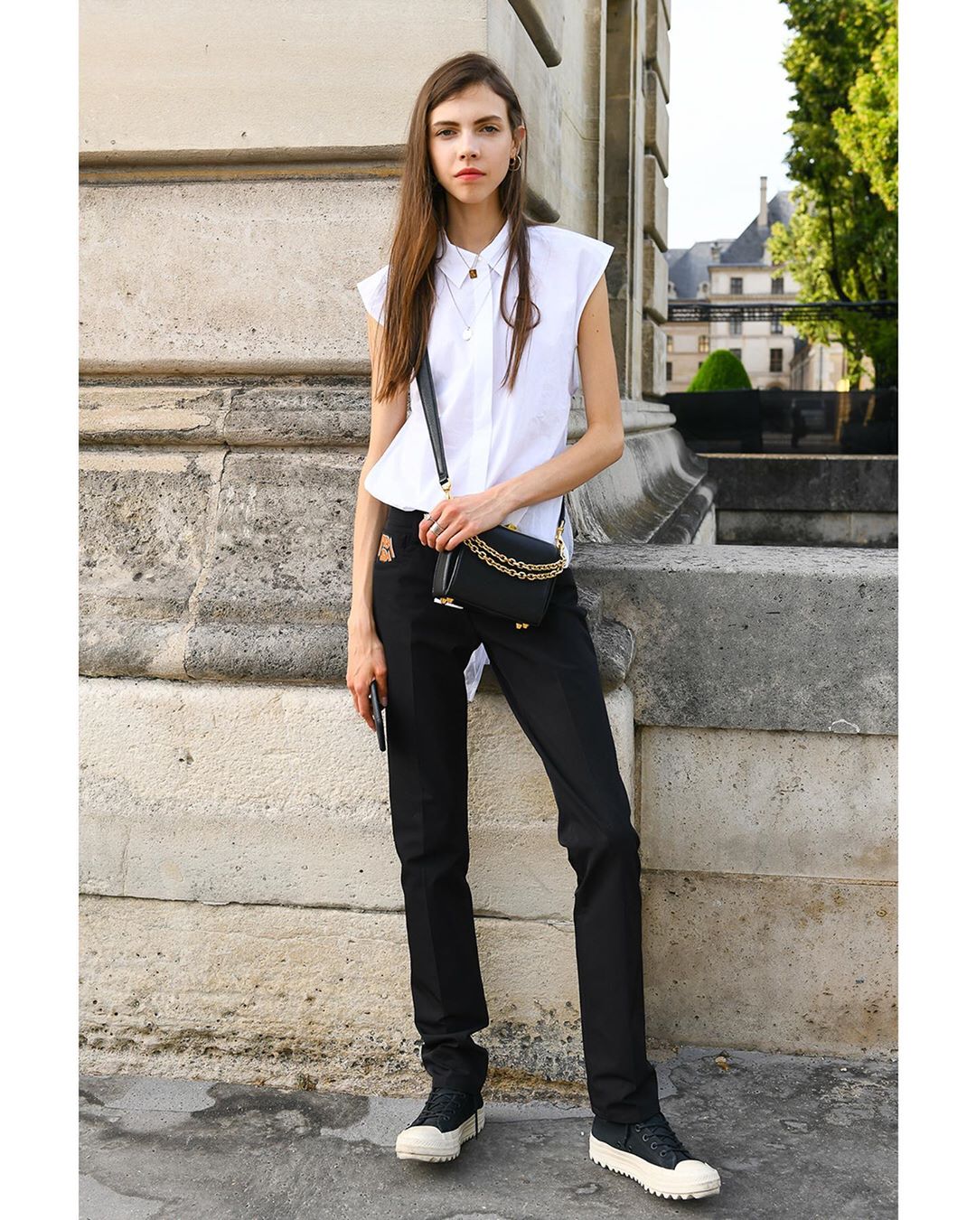 また韓国のガールズグループBLACKPINKのLISAが会場外に現れると、熱狂的なファンから悲鳴にも近い大歓声が送られた。当日は「セリーヌ」のジャケットに、代表的なバッグ“トリオンフ”のレッドを身につけていた。