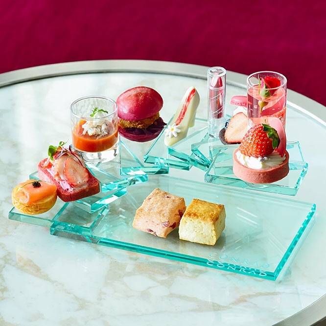 今年のいちごアフタヌーンティーは、とりわけデザインに優れたもの揃い。〈コンラッド東京〉のアフタヌーンティーはコンパクトやリップを模したデザインで、まるでお菓子のメイクボックス。リップは本物のように繰り出せます。詳細はこちらで↓
