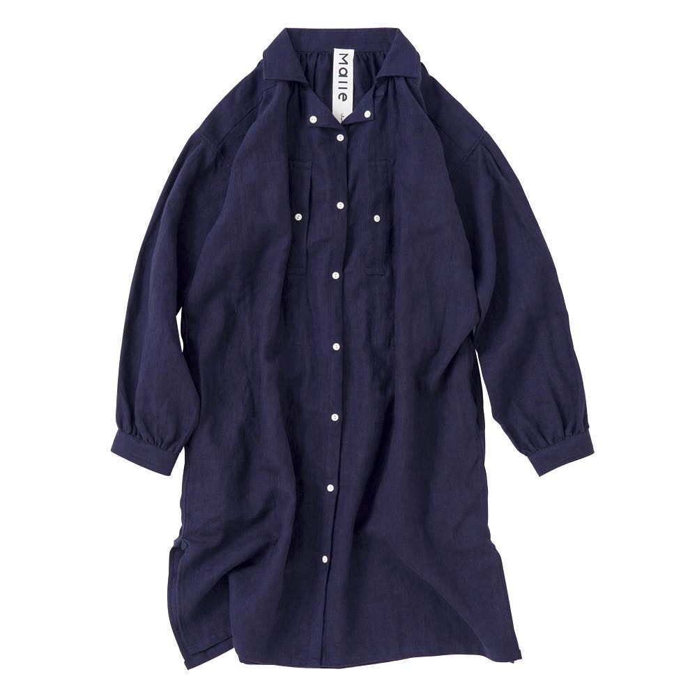 浅川麻衣さんがデザイナーを務める「Malle(マル)」。写真は、ホームクロージングとパターンを試行錯誤した「羊飼いのロングシャツ」。冬用の起毛した麻素材。¥18,000