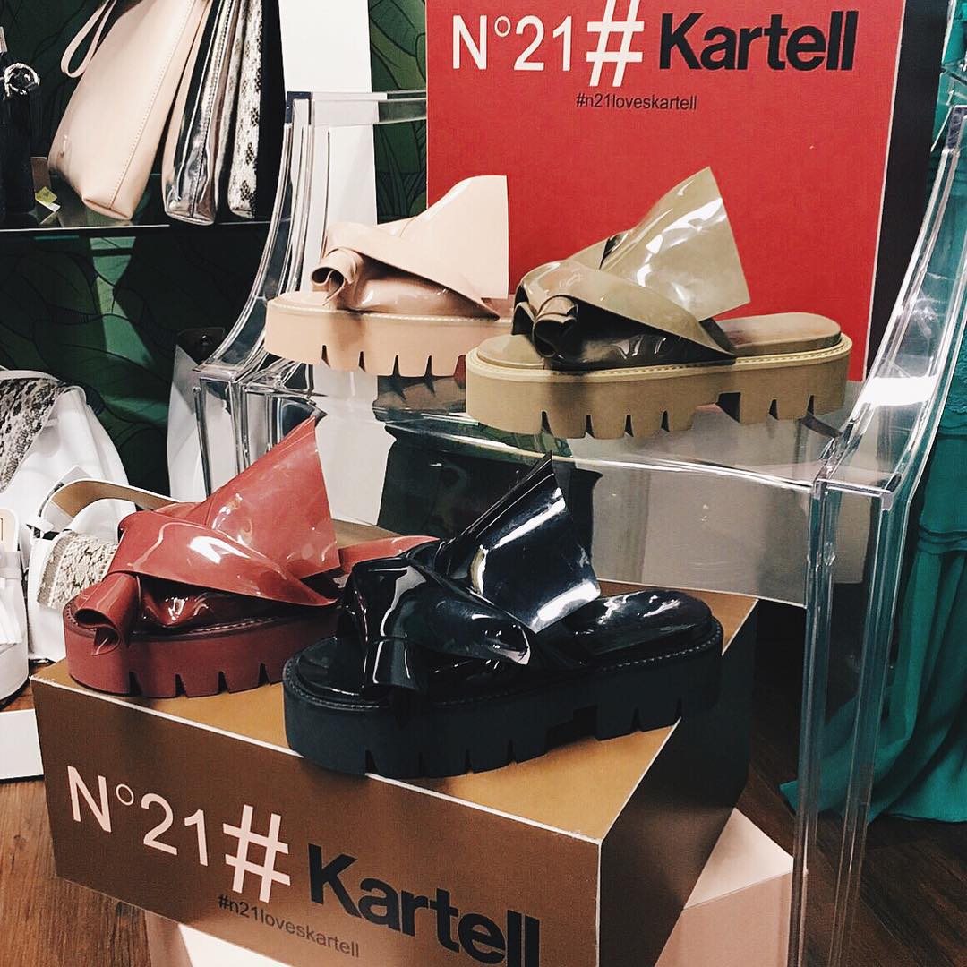 「ヌメロ ヴェントゥーノ」が「カルテル」とのコラボで、雨でもへっちゃらなサンダルを2月頃に発売するそう。アイコンになりつつあるノットディテールをラバーで表現。厚底もポイントです。
