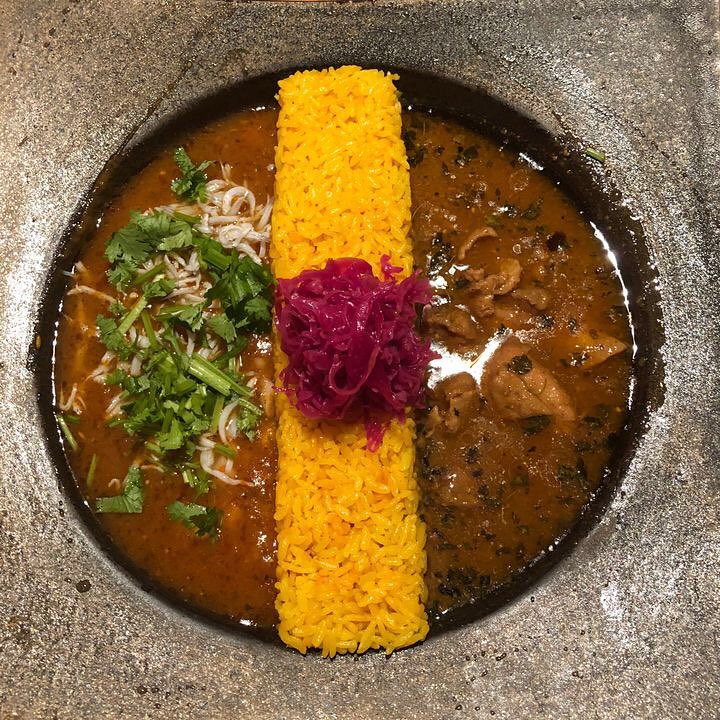 吉祥寺にある「ピワン」。こちらのお店では、「2種盛りカレー」が人気メニュー。真っ黄色なライスと美しく盛り付けられたカレーのルーが目を引きます!