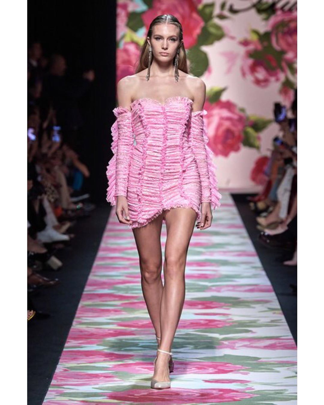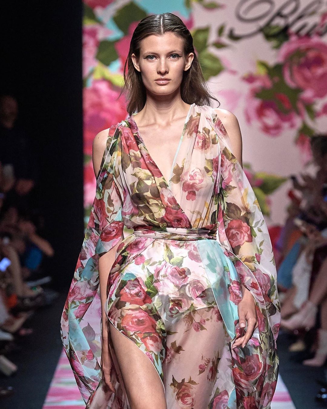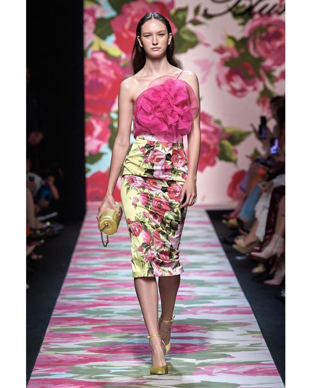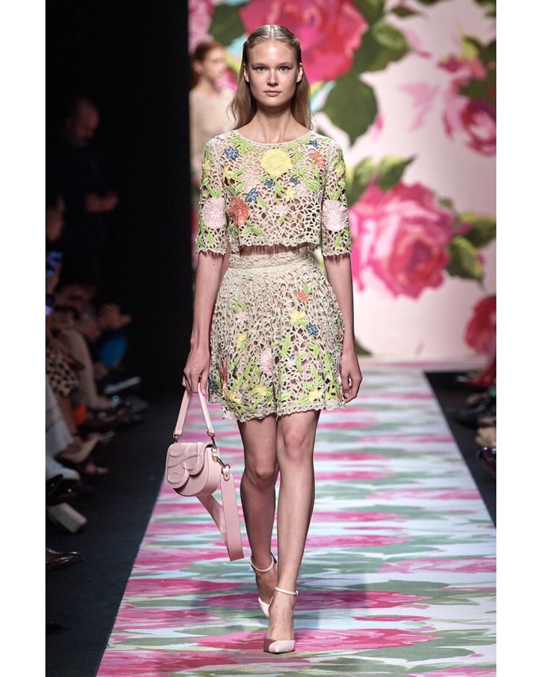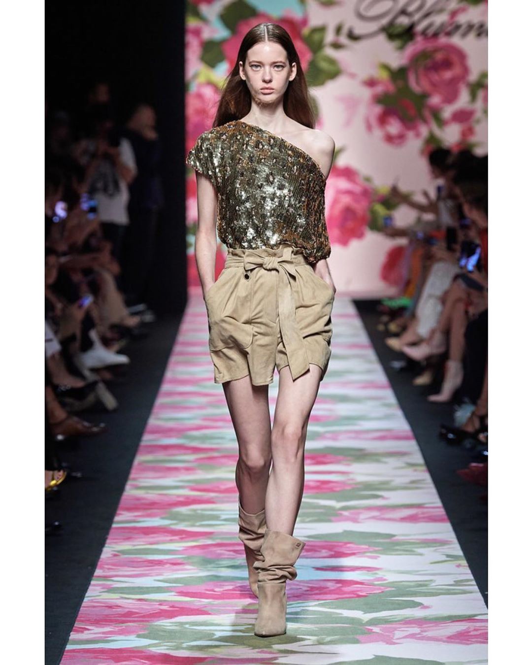 Blumarine showcased its Spring collection, which was filled with floral motifs including even the catwalk. The pastel color palette set the entire mood of the show dreamy and romantic.#mfw #SS20 #blumarine