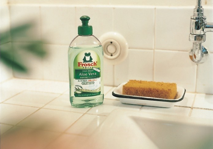 長年愛用している〈フロッシュ〉のアロエヴェラ。「ほかの洗剤に比べて手肌が乾燥しづらいのが嬉しいところ。毎日ハードに手を使う仕事なので、お客様のためにも、自分のためにも、手元は美しい状態でありたくて」と若井さん。