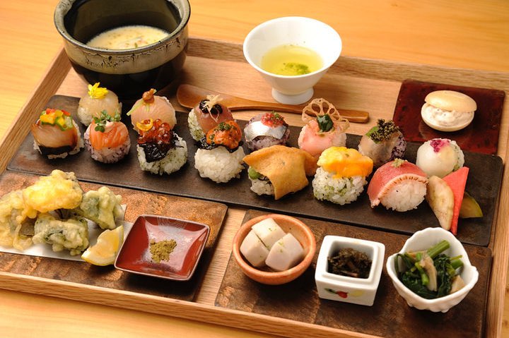 看板メニューは、旬のネタを使う彩り豊かな手鞠鮨。基本の鮨めしは塩分を控え京都の酢とダイダイの果汁で爽やかな味わいです。