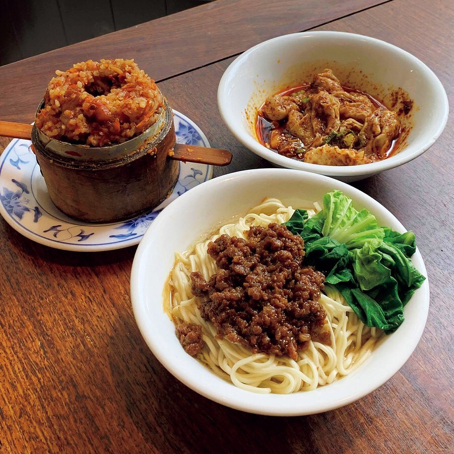 ライター片倉真理さん(@marikatakura)による連載「&Taipei」。今号では観光客で賑わう永康街を散策。まずは美食スポット、東門市場へ。『老鄧Lao Deng1949』のおすすめは、ゴマダレと肉そぼろがのった「炸担麺」。『御牛殿』の牛肉麺は、生の牛肉にアツアツのスープを注いでいただきます。(→p.145)