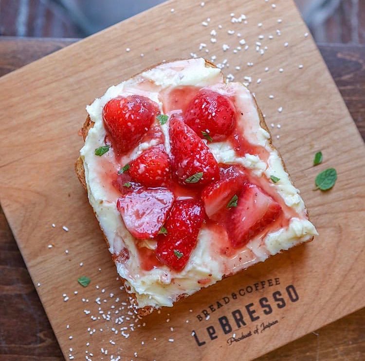 食パン専門店の「レブレッソ」をご存知ですか?こちらは、冬季限定メニューの「ストロベリー&カスタードクリーム」です。ふわふわ食感がたまらないこだわりの食パンの上に、たっぷりのカスタードクリーム、あまおうのいちごジャムとあまおうがのっている絶品なんだとか。