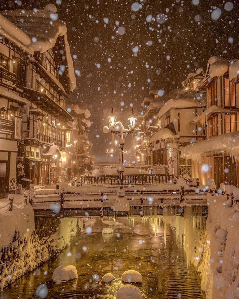 こちらは、山形県の銀山温泉。NHKの朝ドラの舞台となったことでも知られています。大正ロマンを感じるどこか懐かしい街並みは冬になり雪が積もるとさらに美しい景色に。そろそろ冬の旅行の予定を立ててみてもいいかもしれませんね。