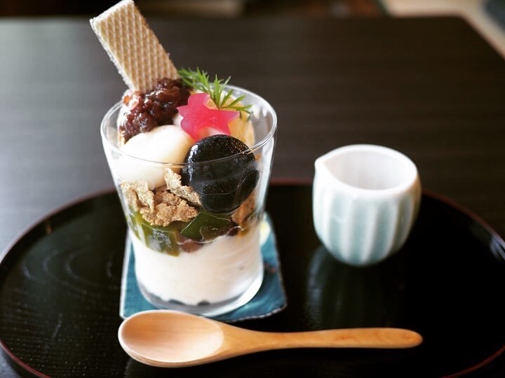 おすすめは「燕パフェ」。こちらは5月末から新メニューとして追加されたデザートで、抹茶寒天や豆花、玄米フレーク、豆腐白玉、バニラアイスなどを重ねたボリュームたっぷりのパフェです。店名にちなんだ燕が乗っているのもかわいいですね。
