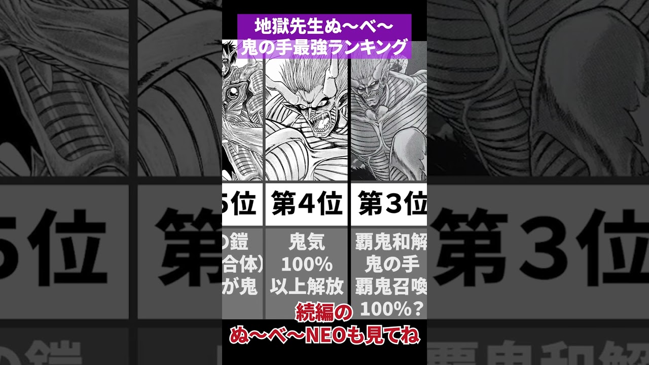 ※ネタバレ注意 ぬ~べ~が使用する鬼の手の各形態、最強ランキングです 【BGM】魔王魂様→https://maou.audio/14_shining_star/ #地獄先生ぬ~べ~ #最強ランキング #ジャンプ漫画 #鬼の手 #鵺野鳴介 #覇鬼 #絶鬼 #眠鬼 #地獄先生ぬ~べ~neo #アニメ # #漫画 #解説 #ジャンプ作品 #懐かしいアニメ AnimeYouTubeアニメアカメが斬る!アニメジャンプジャンプ作品ジャンプ漫画ショートアニメ地獄先生ぬ~べ~地獄先生ぬ~べ~neo懐かしいアニメ最強ランキング漫画紹介解説鬼の手鵺野鳴介 Write A Commentコメントを投稿するにはログインしてください。