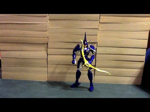 This is my review of the Armor Plus Tenkuu no Touma. He’s known in the US as Rowen of Strata and is from Yoroiden Samurai Troopers (Ronin Warriors in the US). It comes with the figure, a seated black dummy and stand, armor pieces to attach to either the figure or the dummy, an extra face, extra hands, his bow, and an arrow. Most of the armor pieces are die-cast and are made such that he retains full articulation while it’s on him. The helmet comes with 2 faceplates: 1 with the battle mask on and 1 with the battle mask off. This figure is really good, and I can definitely recommend it. Rowen is a Tamashii Web Exclusive, so he’ll be REALLY expensive, but he’s worth it.