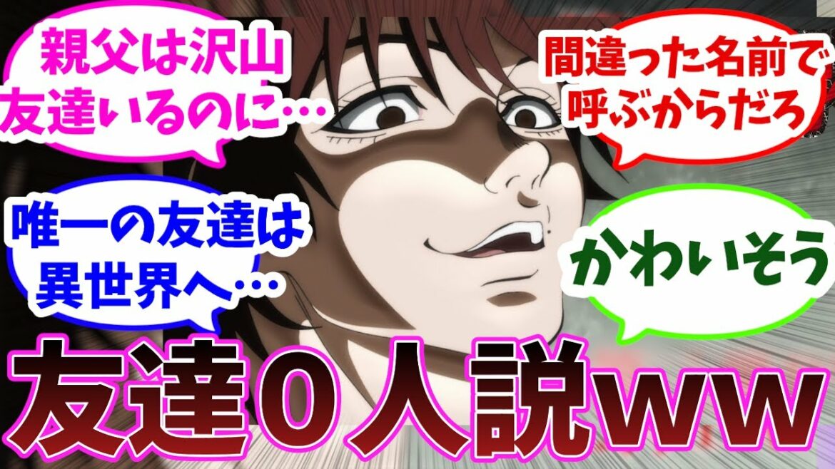 一応、顔の広さで言ったら世界ヘヴィー級チャンピオンのアイアン・マイケルとか神心会館長の愚地克巳、大統領の純・ゲバルとかあるのにガチ友達って言えるのピクルと花山ぐらいしかいないの草