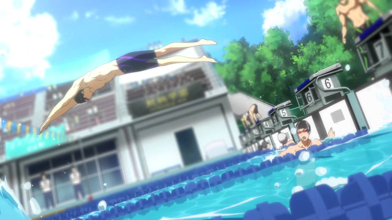 The Iwatobi Swimming Club’s first relay at the prefectural tournament.