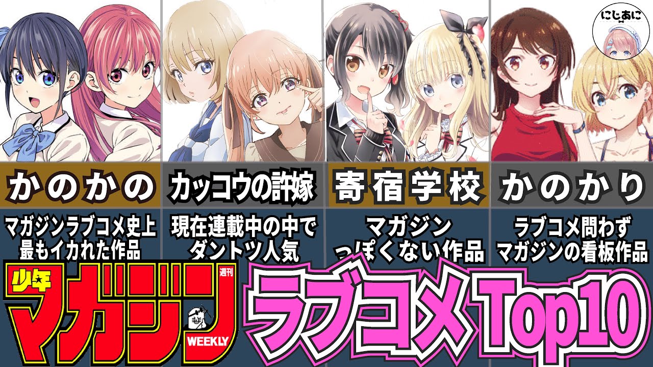 週刊少年マガジンにて連載されているおすすめラブコメアニメをランキング形式で10作品紹介!マガジンはラブコメばかり!多いですよね!歴代、歴史、連載中、ドロドロ、キュンキュン、胸キュン、日常、ほのぼの、学園、笑える、ギャグ作品など有名で名作なラブコメアニメからマイナーなおすすめ恋愛アニメからまて幅広く厳選させて頂いています。おすすめアニメランキング!歴代オススメアニメ!宜しければ皆さんイチオシのマガジンラブコメアニメを教えて下さい♪