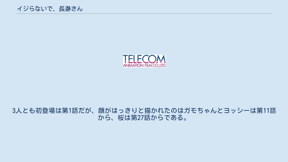 3人とも初登場は第1話だが、顔がはっきりと描かれたのはガモちゃんとヨッシーは第11話から、桜は第27話からである。