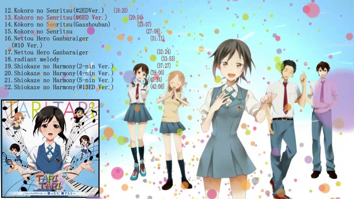 Tari Tari is a 13-episode 2012 Japanese anime television series produced by P.A. Works and directed by Masakazu Hashimoto. The series aired in Japan between July 1 and September 23, 2012 on TV Kanagawa, and was also simulcast by Crunchyroll. The series is licensed in North America by Sentai Filmworks. A manga adaptation illustrated by Tomiyaki Kagisora was serialized in Square Enix’s Gangan Joker in 2012.