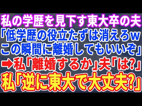 【スカッとする話】低学歴の私をいつも見下す東大卒の夫「低学歴の役立たずは出ていけ! 離婚してもいいんだぞw」 私「…今まで秘密にしてたけど実は私は◯◯なの…」夫「え…?」【修羅場】