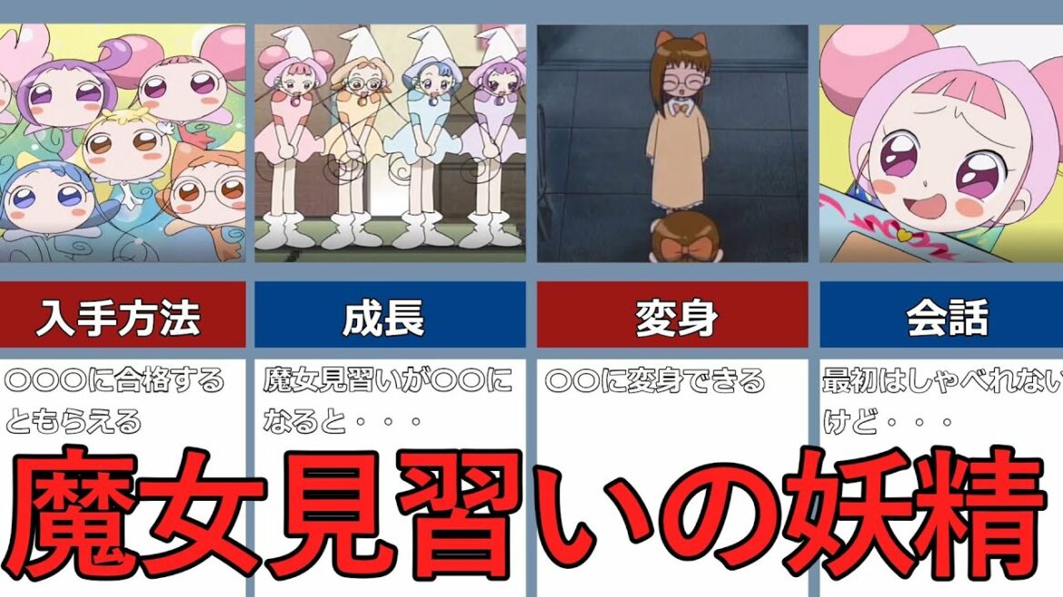 魔女見習いの引き連れている妖精について調べてみました。 魔女の連れている妖精は今回は除外としています。 例)マジョリカの妖精ララ、マジョルカの妖精ヘヘ 小説版では各妖精が猫に変身できるようですが 今回はアニメ版のみを参考に動画を作成していますのでご了承ください。 おジャ魔女どれみトドニニパティシエインカムパトレーヌコールファファみみレシピ日記レレロイヤルパトレーヌパソコンロロ Write A Commentコメントを投稿するにはログインしてください。