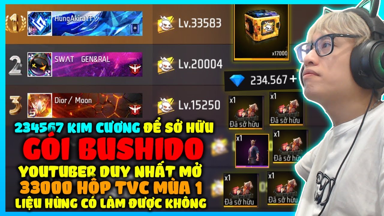 HÙNG AKIRA THÁCH ĐẤU GARENA VỚI 234567 KIM CƯƠNG MỞ 17000 HỘP TVC MÙA 1, LẬT ĐỔ TOP 1 GIÀU THẾ GIỚI