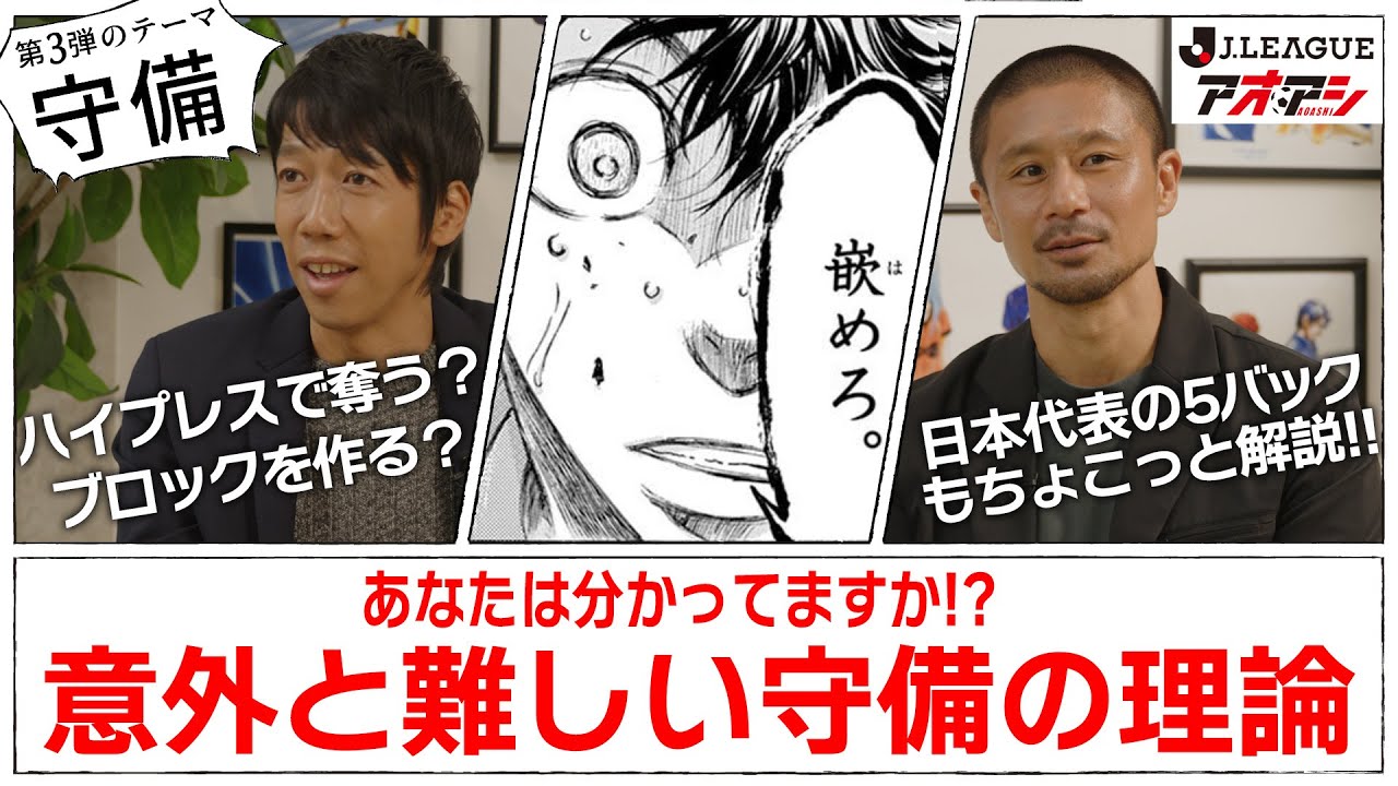実際の試合映像と人気サッカー漫画の『アオアシ』(作者:小林有吾/出版社:小学館)のカットを入れながら分かりやすく解説していただきました。