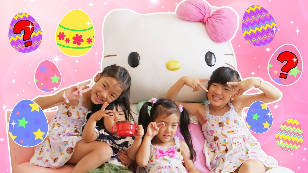 ハーモニーランドに遊びにいった時にキティちゃんルームにお泊まりしました。せっかくなのでサンリオのお菓子やグッズを入れたサプライズエッグをお部屋にかくしてみんなでさがして遊びました♪