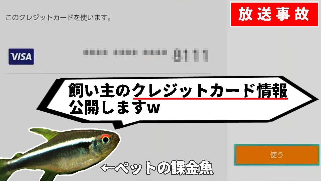 YoutubeLiveにてペットの魚が飼い主のクレジットカード情報を公開し、その後ニンテンドーeショップで課金してきた事件についてまとめました