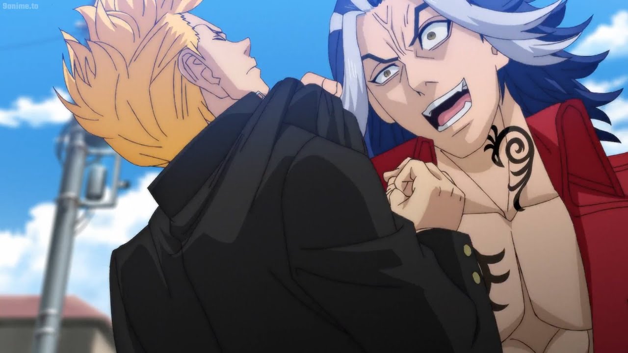 黒龍の10代目リーダーと対決するタケミチは無力。Takemichi confronts the captain of the Black Dragon.