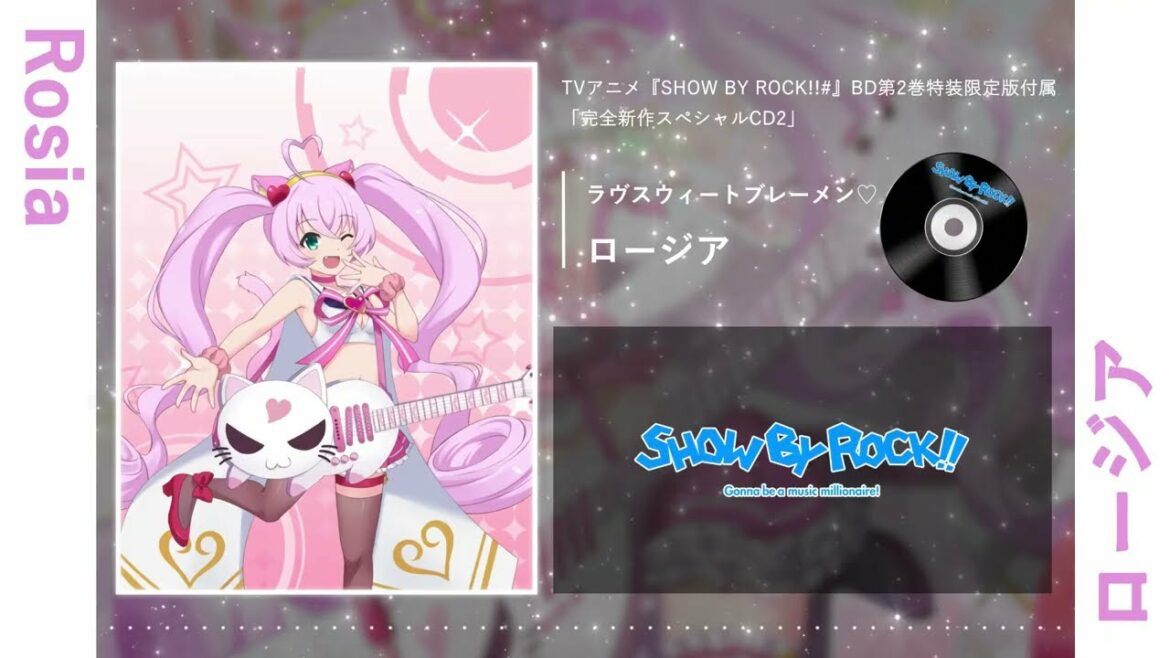 ラヴスウィートブレーメン♡ – TVアニメ『SHOW BY ROCK!!#』BD第2巻特装限定版付属 「完全新作スペシャルCD2」 作詞:高瀬愛虹 作曲:no_my 編曲:Funta7 歌:ロージア(日高里菜) #SHOWBYROCK!! #SB69 #ショーバイロック Fes a Live!SB69SHOW BY ROCK!!ショウバイロック Write A Commentコメントを投稿するにはログインしてください。