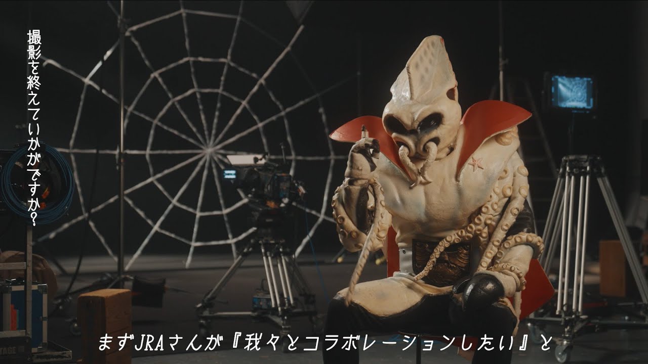 JRAとのコラボレーション動画に出演したイカデビルさんにカメラを向け、「怪人生初」のインタビューを敢行!