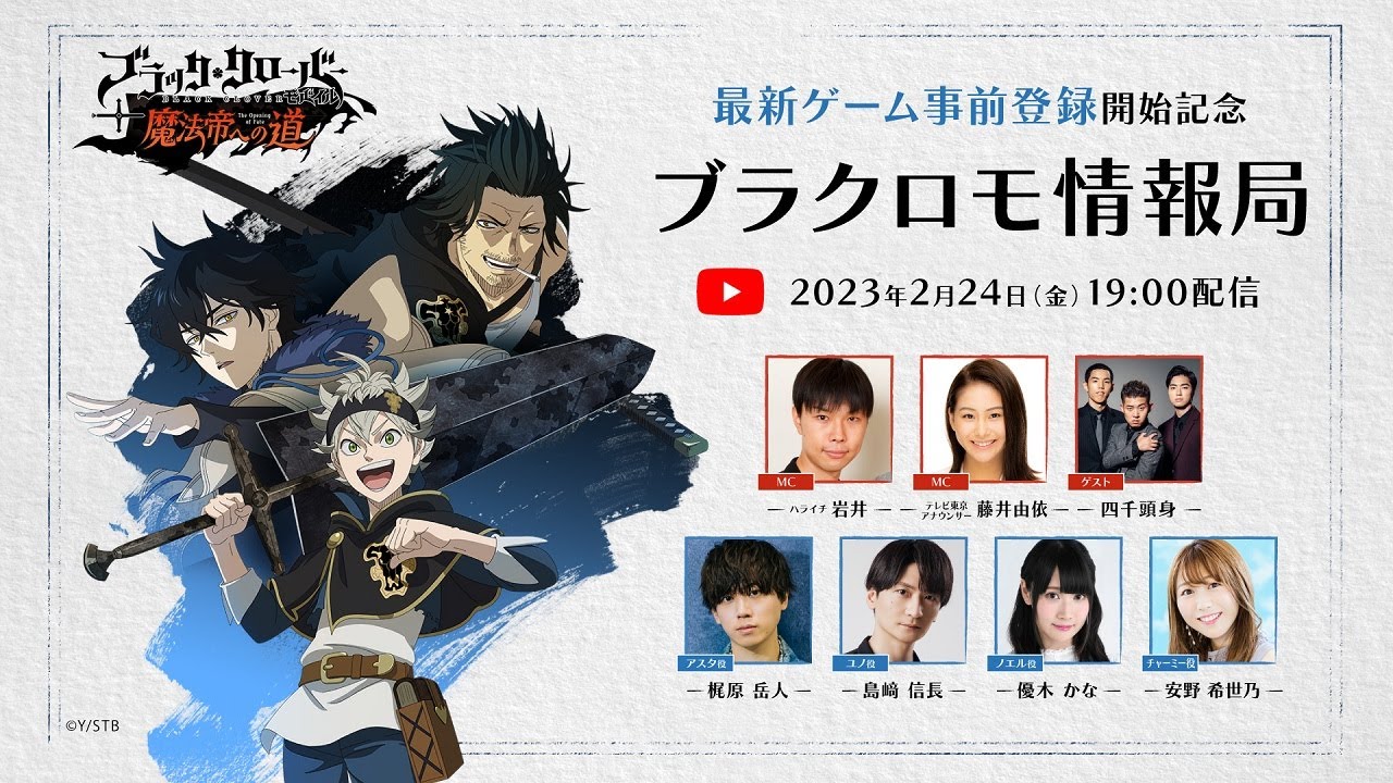 スマートフォン向けゲーム『ブラッククローバーモバイル 魔法帝への道 The Opening of Fate』の事前登録開始を記念して、ブラクロモの魅力を豪華ゲストと共にお届けするスペシャル番組!