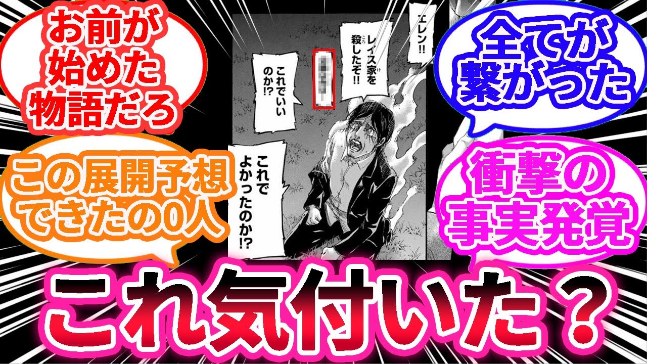参考資料&引用 ©諫山創・講談社/「進撃の巨人」The Final Season製作委員会 ※動画内で使用している全ての画像は上記の作品からの引用させていただいております。 #進撃の巨人 #ファイナルシーズン #The Final Season Part2 #考察 The Final Seasonエレンファイナルシーズンライナーリヴァイ巨人考察解説進撃の巨人進撃の巨人 The Final Season Part 2 1 Comment 鰻愛好家 3年 ago ほんと深すぎて理解が追いつかん😭流石ガビ山師 Write A Commentコメントを投稿するにはログインしてください。