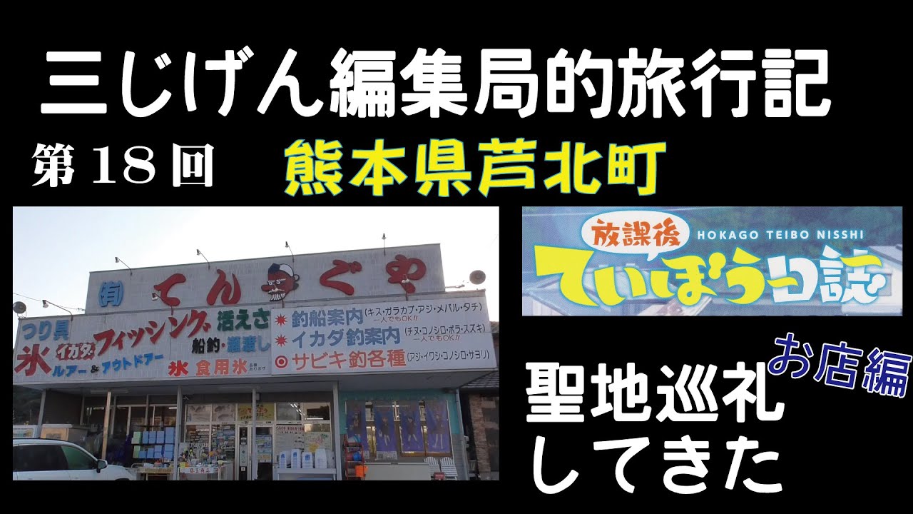 放課後ていぼう日誌の聖地、熊本県葦北町の聖地巡礼の模様をご紹介。今回はお店編と題し、グリルかかし、てんぐや釣具店の2か所を巡っていきますが・・・?
