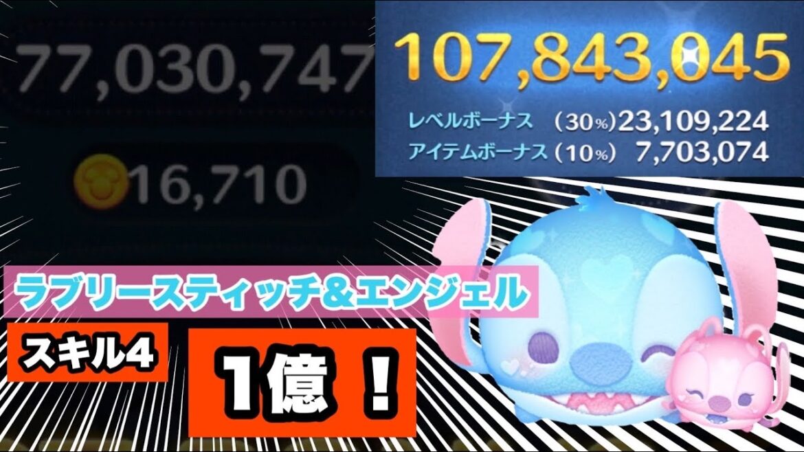 ラブリースティッチ&エンジェルスキル4延長なし1億 #ツムツム #ペアツム #リロアンドスティッチ #スティッチ #エンジェル